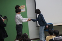 生徒会役員は、クイズを交えて本校のよさを紹介してくれました。短い時間でしたが、楽しいひと時となりました。