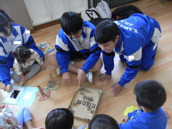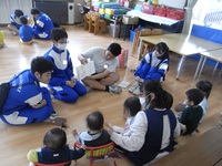 岩槻バンビ保育園にご協力をいただき、赤ちゃん・幼児触れ合い体験を行いました。11月11日は、3年1組が行ってきました。「自分のおもちゃで楽しんでもらえたことがうれしかった」「自分たちにもこんな時期があったんだなと思い、成長のすごさを感じた」「知育のことなどさまざまな知識が身についた」「先生の小さい子への対応をみて、学ぶことができた」などなど、夏休みから準備してきた手作りのおもちゃで一緒に遊んだり、合唱を披露したり、赤ちゃん・幼児との触れ合いを通じて、中学校生活では経験できない貴重な体験をすることができました。自己の成長について振り返り、親の愛情を感じ取り、そして将来について、家族や家庭、生命の大切さについて考える大きなきっかけとなりました。