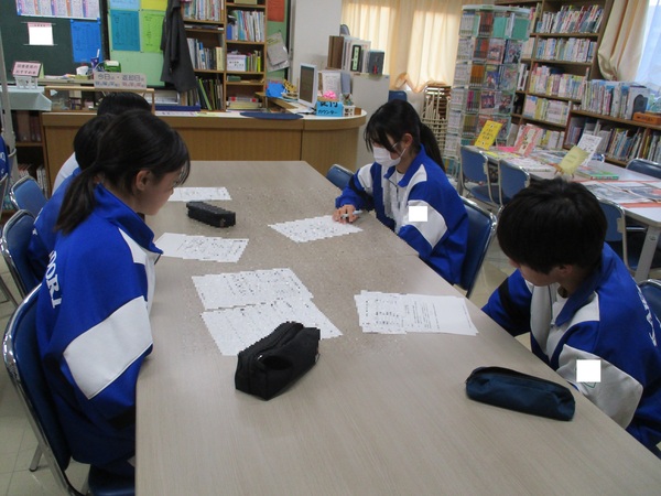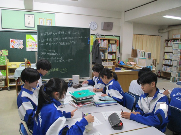 本日、後期第2回目の専門委員会を行いました。図書委員会では、第1回目で決めた活動目標や活動方針を踏まえて、これからの取組について、学年の壁を越えて考えました。学年を越えて話し合うことで、先輩の知恵や後輩の斬新なアイデアが飛び交っていきました。学年の枠を超えて交流できる委員会だからこそ見られた、素敵な様子でした。また、先日実施した「川中万博2025」も踏まえて、どのような広報をすればみんなが図書館に来て、楽しく本が読めるかを検討していきました。これから、アイデアを実現させるためにどうするのか、どのような準備や役割が必要かを深めていくことになります。自分たちの考えた取り組みで、川中生が読書習慣を身につけ、人生を変える1冊に出会えるように頑張っていきましょう!