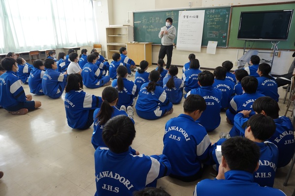 本日、学年集会と大掃除を行いました。学年集会では、各クラスの学級委員から2学期を振り返っての成果と課題の発表を行い、「2学期の反省を生かして、3学期には学級目標のメリハリと協力を達成できるように頑張ろう!」と3学期に向けた抱負を語りました。