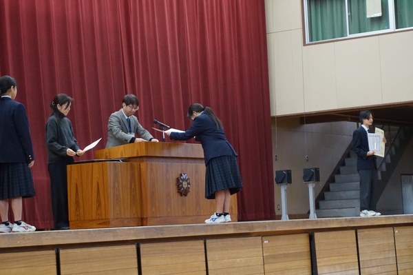 終業式後の表彰では、多くの生徒が表彰されました。多方面で川中生が活躍しています。3学期もs「一生懸命はかっこいい」のスローガンのごとく、培ってきた力を存分に発揮し、自分の進路を切り拓くだけでなく、「自分の好き」を自分の武器に変えていきましょう。最後に、生徒指導・部活動担当から、冬休みの過ごし方・交通安全について話をし、新年、最高のスタートがきれるようにとの話で締めくくりました。