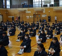 本日、2学期終業式を行いました。校長先生からは、空調設置の紹介とともに、2学期を振り返り「受験を迎えるにあたって、体調を整えて、自分の力を最大限発揮してください。」、「1年生、2年生のまとめをして、進級の準備をする3学期にしましょう。」と「自己肯定感を高めていくためには、自分らしく生きていくことがポイント」という話がありました。そして、最後には、元気になる歌として、「愛は勝つ」を弾き語りしました。