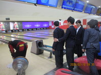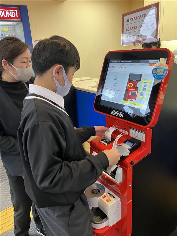 ラウンドワン大宮店では、ボーリング場でのさまざまな仕事の紹介を通して、お客様に楽しんでもらうための裏側の努力を伝えていただきました。そして、職業体験として、代表の生徒に、アプローチ(レーンの手前の部分)をメンテナンスする機械を使用する体験をさせていただきました。また、ボーリング機の裏側の見学では、倒れたピンを集めて並べる機械が大きな音をたてて動く様子に、生徒たちは目を輝かせながら見入っていました。