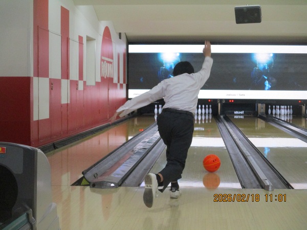後半のボーリング体験では、投球する時のマナーや投球する人への応援の気持ちを込めるハイタッチなど、仲間と一緒に楽しむためのコミュニケーションを教えていただきました。事前学習でコミュニケーションについて学んだことを生かし、実際にハイタッチを何度もしながら進んでいくゲームの中では、自然と「惜しかったね!」「ストライクすごいよ」と生徒たちが互いを励ましたり称えたりする会話が生まれていました。ボーリングというスポーツを通して、他者との良好な関係を築くコミュニケーションの大切さを、改めて学ぶことができました。